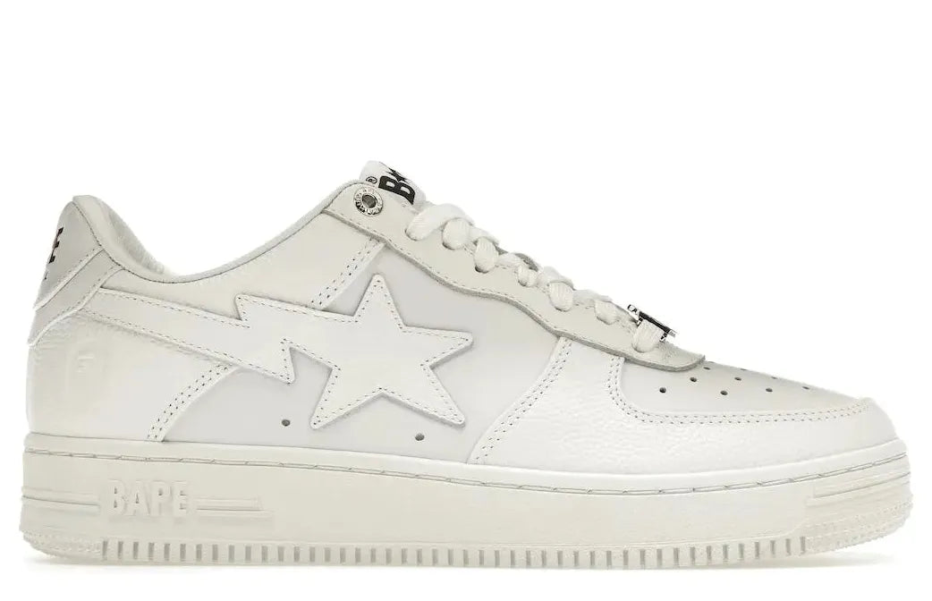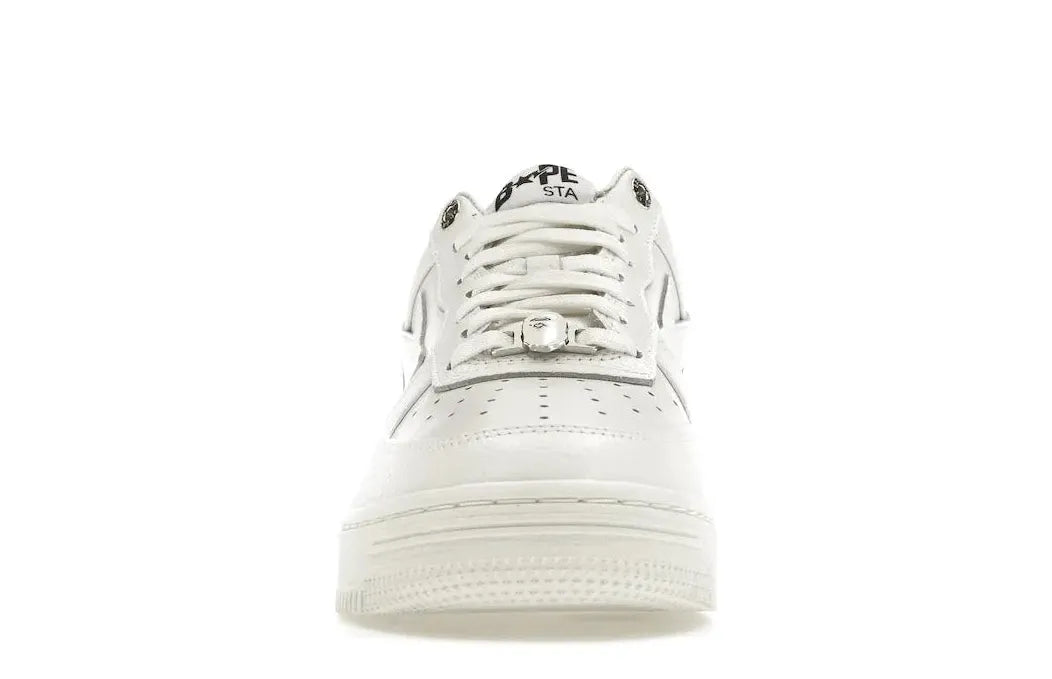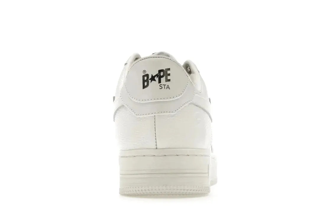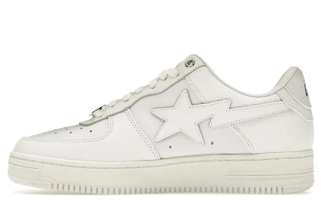 Relace offers you this iconic silhouetted sneaker, the A Bathing Ape Bape Sta Triple White, with its sleek triple white colorway and iconic "star Swoosh". Complimented by premium leather upper construction, these sneakers help you inject a polished streetwear vibe to any outfit.