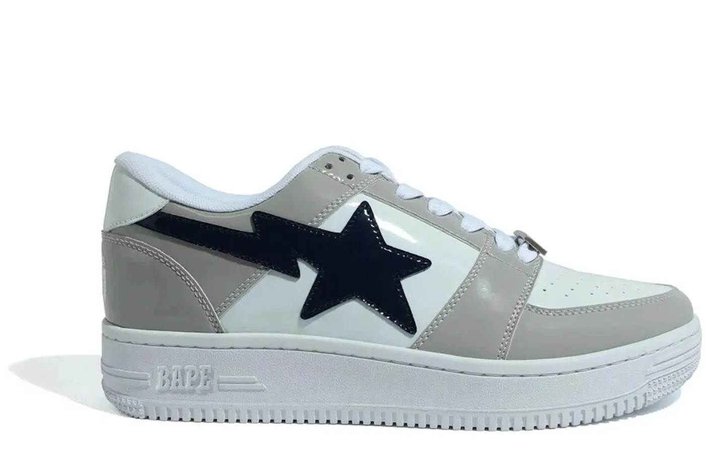 Handpicked by our experts at Relace, the Bape Sta Low White Grey from A Bathing Ape is designed to elevate your daily style game. Crafted with meticulous attention to detail, this silhouette with its white-grey colorway epitomizes the street-culture nexus the brand is renowned for.