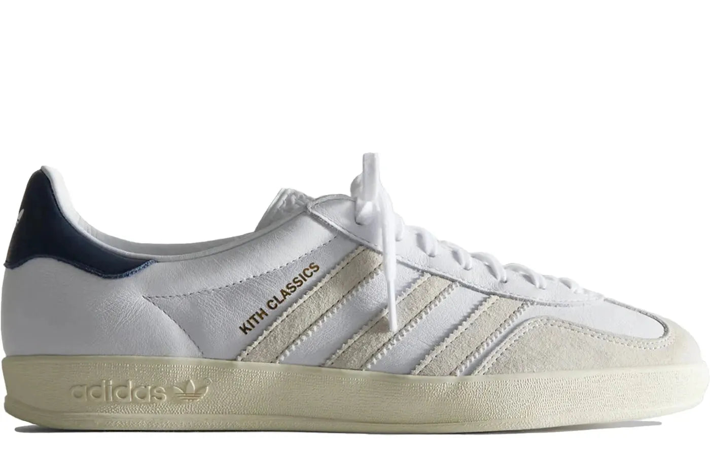 Adorned in white leather with contrasting navy stripes and details, these shoes are redefining street-style. Relace’s Adidas Gazelle Indoor Kith Classics are a perfect blend of retro-modern design and athletic functionality.