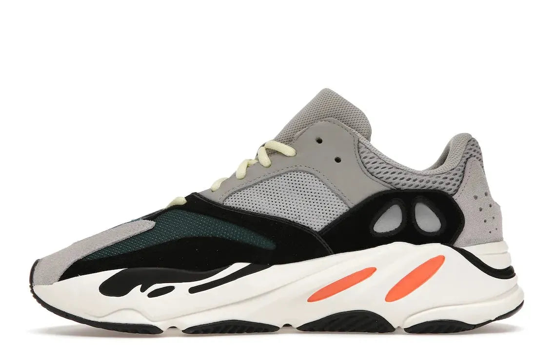 Relace offers the re-released Yeezy 700 Wave Runner with a chunky Boost sole, accented with contrasting splashes of orange, making it a must-have in any sneaker collection. This footwear strikes a perfect balance between the agility of a knit runner and the robust toughness of a grungy skate look, guaranteeing not just excellent foot-comfort but also a striking style statement.
