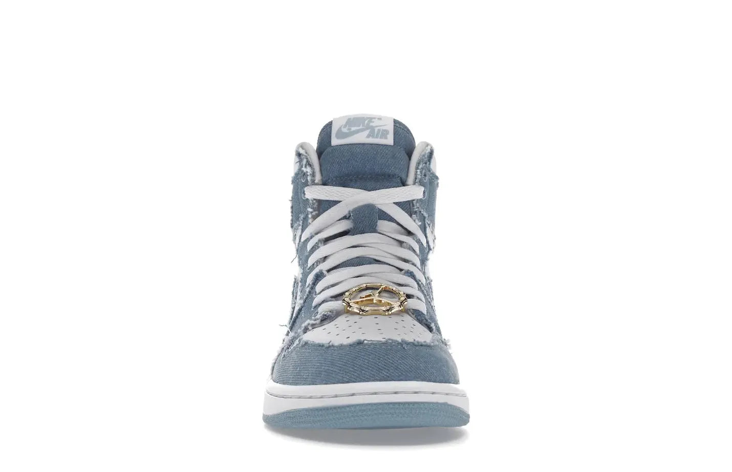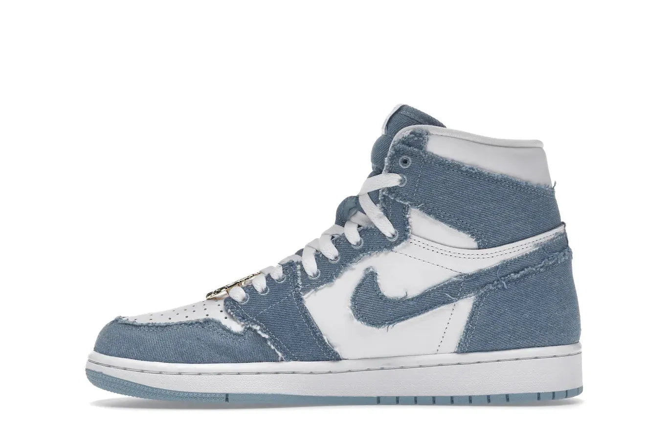 Our Air Jordan 1 High OG Denim (Women) blends retro design with modern appeal, featuring a rubber midsole, outsole and full leather uppers for a memorable style statement. The upper meshes beautifully with won-blue metallic gold, while the clean, crisp white color of the sole enhances its aesthetics.