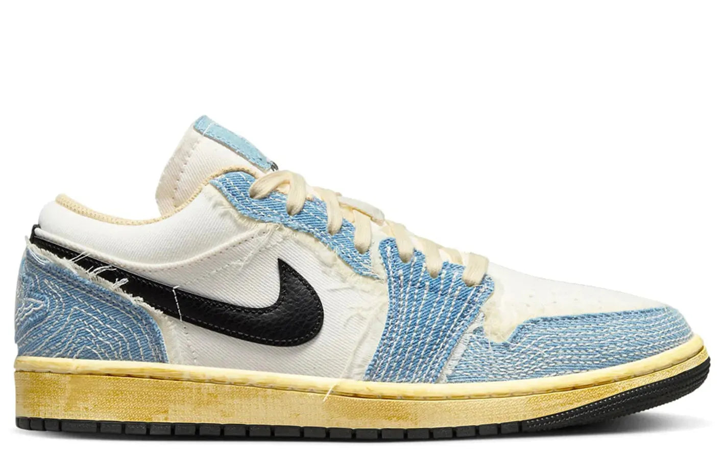 Featuring unique colorways and intricate detailing, the Jordan 1 Low SE WRMK Sashiko Denim stands out in style. With a well-crafted rubber sole for superior grip, Relace provides you with the opportunity to rock your Jordans, ensuring longevity and comfort.