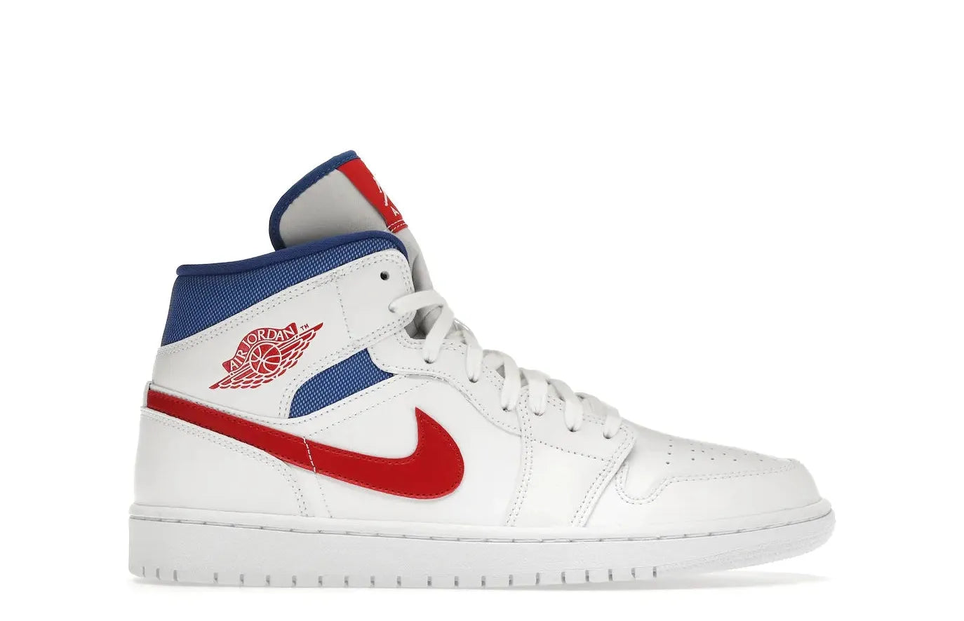 Relace takes pride in sourcing sneakers like the Air Jordan 1 Mid White Red Royal W which showcases timeless design elements. Furnished with the Nike Swoosh on the side, Air Jordan branding on the ankle, and the Jumpman logo on the tongue, the footwear displays a predominantly white leather upper highlighted with striking red accents and Game Royal detailing. Launched on 26th April 2020, this shoe continues to make waves in the sneaker community.