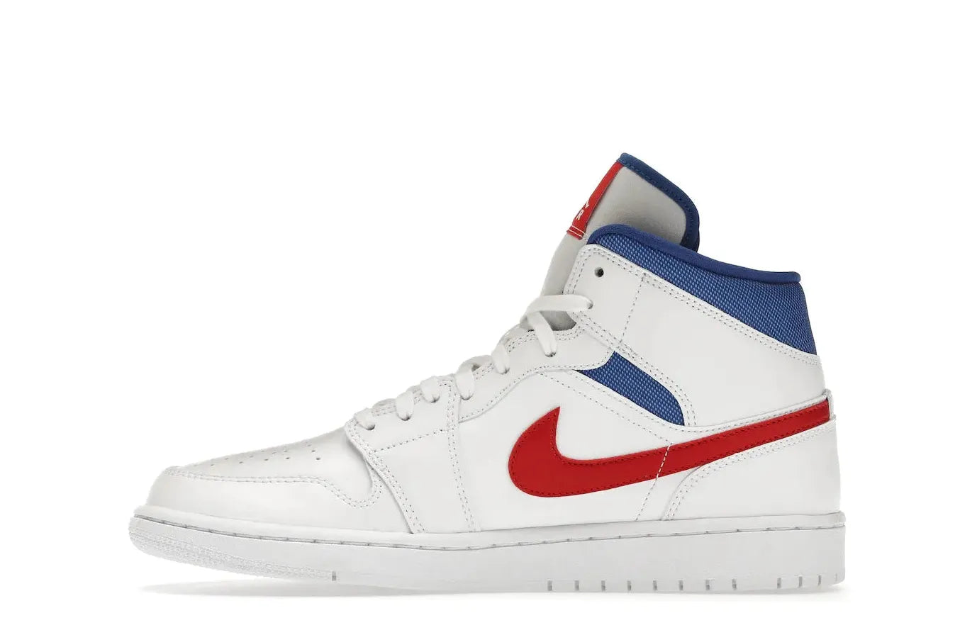Notice the fine detailing on the Mid White Red Royal Air Jordan 1 W. It offers a cushioned collar and tongue along with a plush foam midsole, all designed to ensure enduring comfort. The addition of a rubber outsole provides unparalleled traction across diverse surface types.