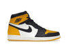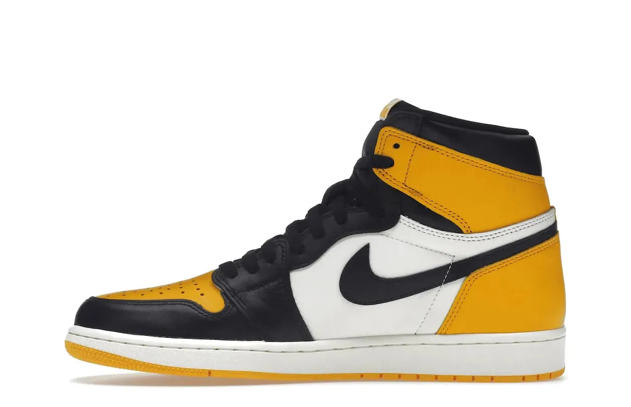 Crafted entirely in leather, the Air Jordan 1 Retro High OG Yellow Toe showcases a harmonious palette of white and yellow. The white base is complemented by a vibrant yellow toe box and overlays at the heel and ankle area.