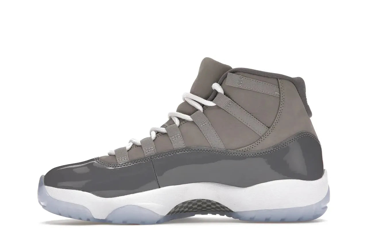 To add more subtlety and contrast to the design, a white midsole is integrated. The overall design is concluded with an icy blue translucent outsole. This striking combination of elements makes it an attractive addition to any sneaker collection. The Air Jordan 11 Cool Grey (2021) was released in December 2021.