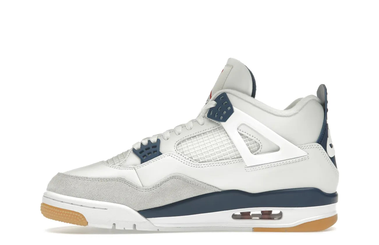Indulge in the skateboard-friendly design of the Jordan 4 Retro SB Navy, now attainable at Relace. This re-engineered version takes its form from the demands of the skateboarding world, with a redesigned sole for increased grip and suppleness. Crafted with superior materials to ensure resilience on both the skateboard deck and city streets, it's a must-have for all. The iconic style of the AJ4 is preserved with the classic lace cage and signature mesh side panels, elegantly merging style with function.