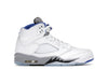 The revamped Air Jordan 5 Stealth differentiates itself from its 2006 iteration with subtle yet striking changes. The cutting-edge design features a grey-based midsole accentuated with black and affixed with blue splatter paint - a unique contrast to the blue spikes of the original pair. Not only has the Jumpman on the heel been re-embroidered in black, but a black lining now accompanies the reflective tongue synonymous with the style.