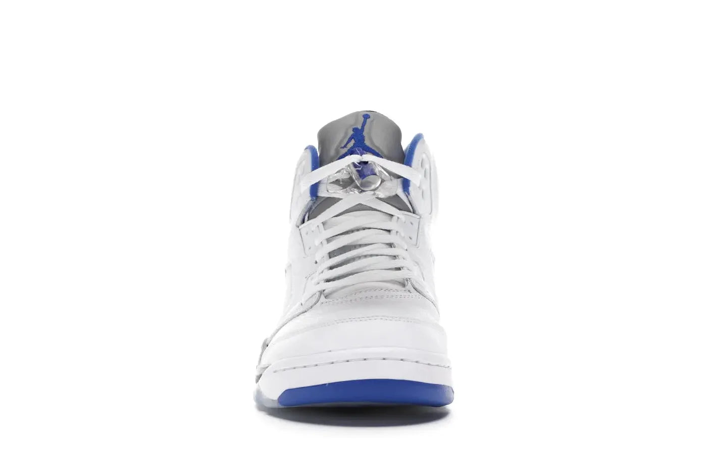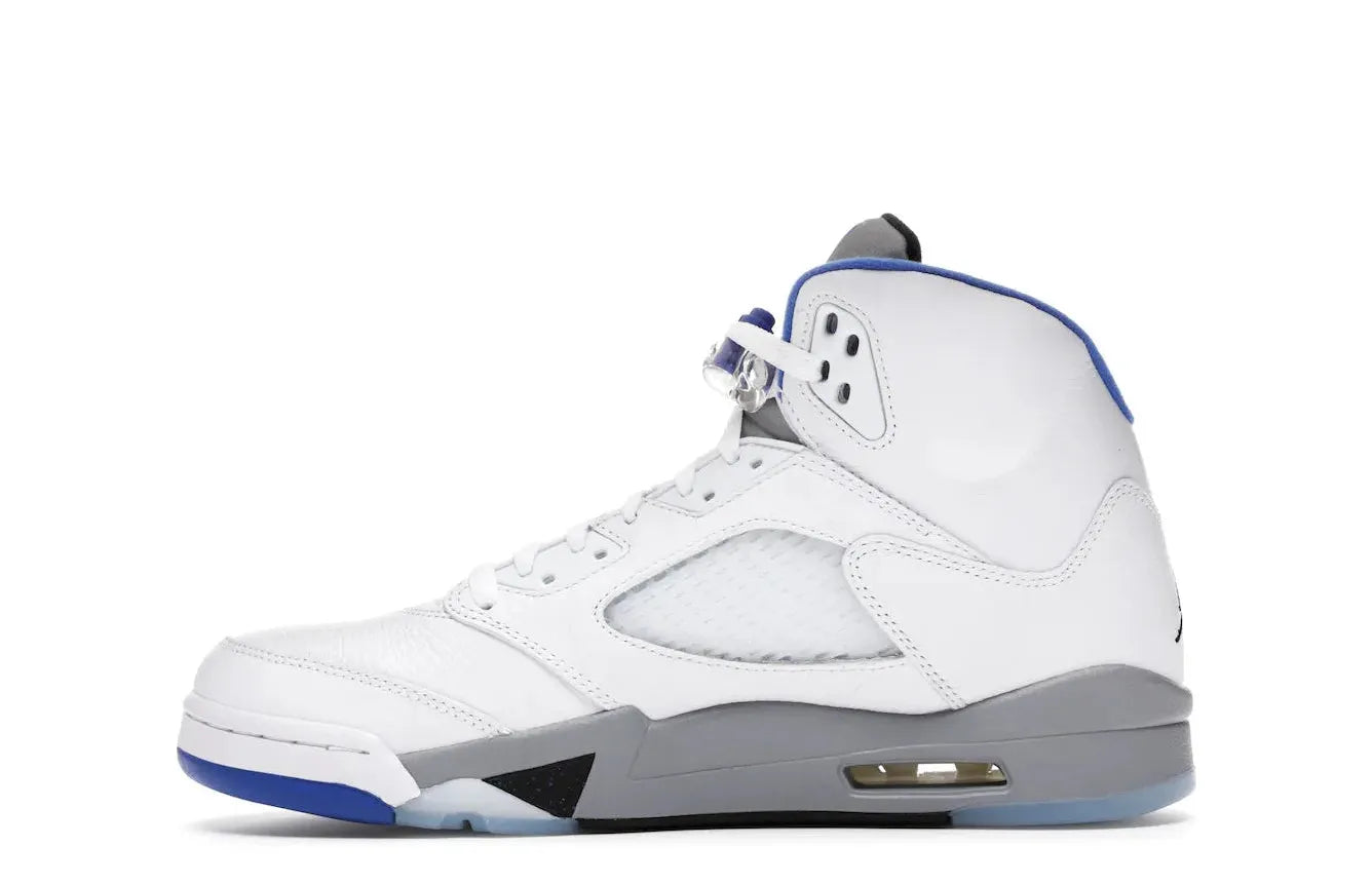 Relace presents the upgraded 2021 Stealth edition while retaining the timeless elements integral to its design. It boasts a breathable, white tumbled leather upper and translucent rubber mesh on the panels. Released in spectacular fashion in March of 2021, the Air Jordan 5 Stealth finely bridges the gap between the past and the present, providing sneaker enthusiasts with a modern-day classic.