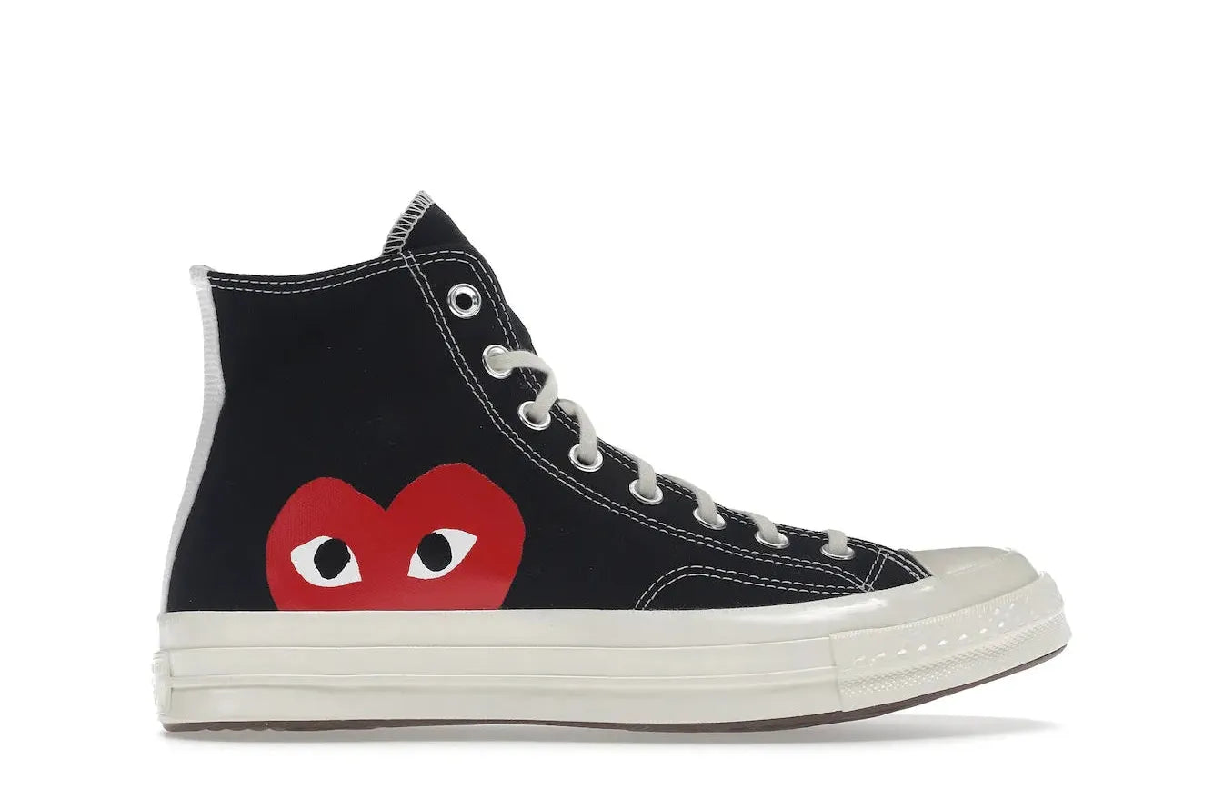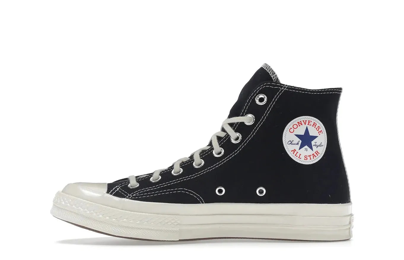 Relace takes pleasure in offering this latest release - the Converse Chuck Taylor All-Star 70s Hi Comme des Garçons PLAY Black. This innovative sneaker enhances your attire with its snug ankle-hugging high-top collar, and a harmonious blend of black and white tones. Explore and experience high-end, comfortable, and current trends in sneaker fashion at Relace.