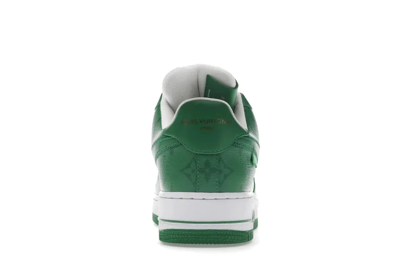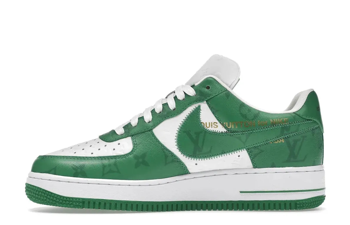 Relace brings this exclusive pair to you, reflecting Abloh's exceptional craftsmanship that transforms the classic Air Force 1 silhouette into an upscale masterpiece. The white leather upper, contrasted by the green signature LV pattern, makes these shoes a must-have for sneakerheads and luxury enthusiasts alike.