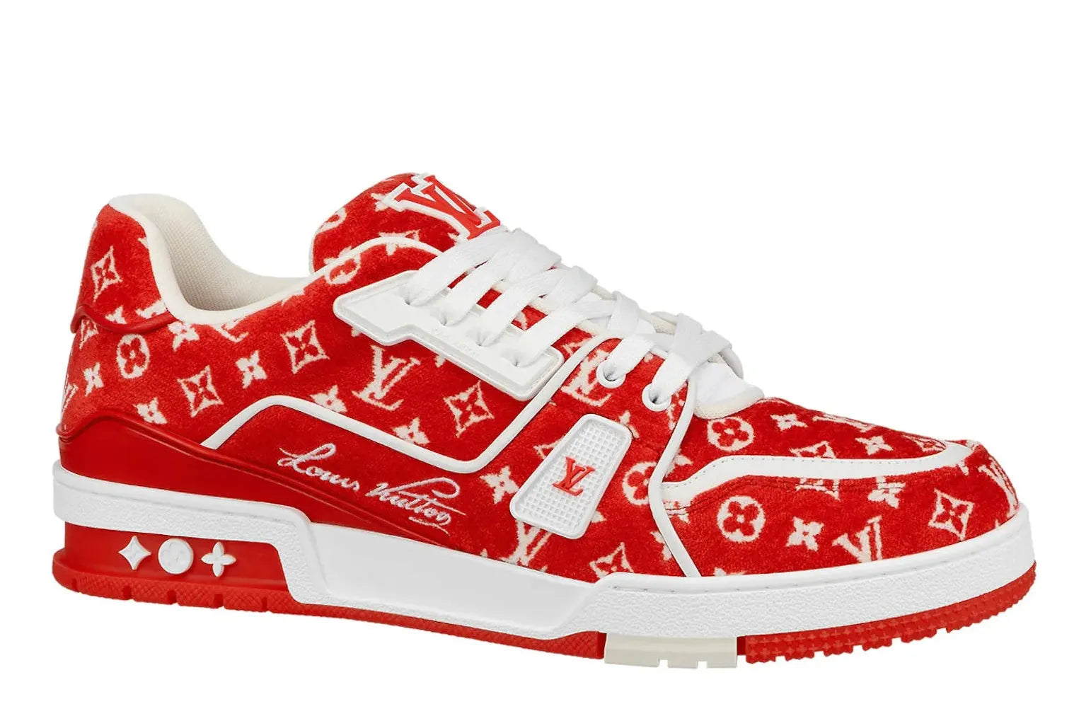 Explore the unparalleled luxury sneaker shopping experience that Relace offers. With our Louis Vuitton Trainer Red Monogram Textile, make a bold fashion statement wherever you go. Discover trend-setting designer footwear at Relace, where style meets comfort.