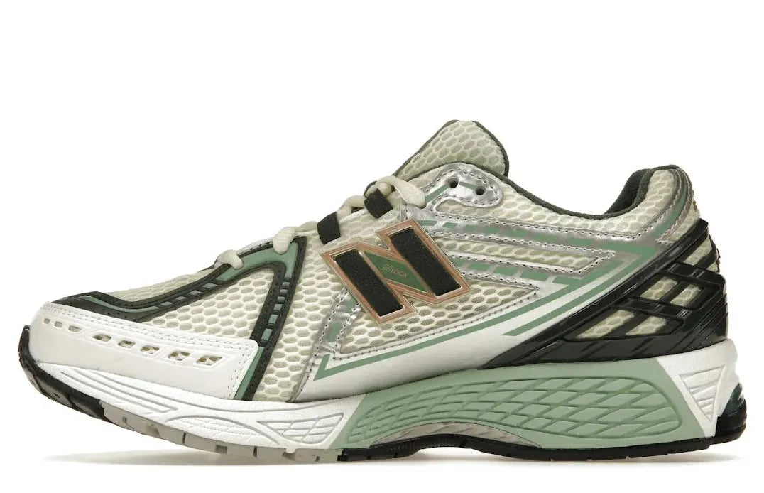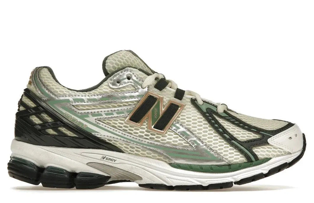 The New Balance 1906R Aime Leon Dore Green from Relace boasts a green suede upper transforming your everyday style. Its sturdy construction with contrasting white leather accents, set against a gum sole, ensures durability that's made to last.