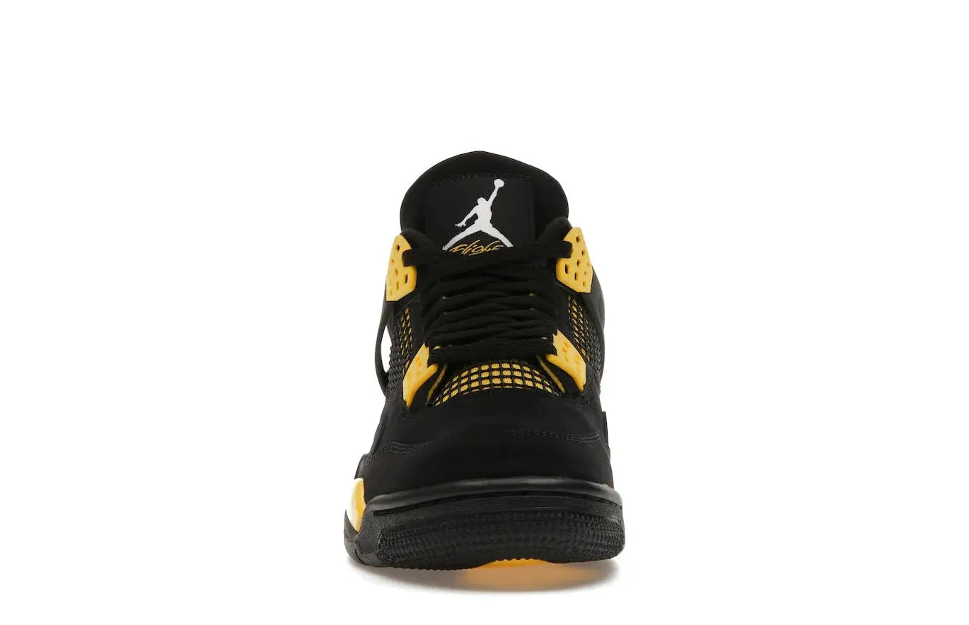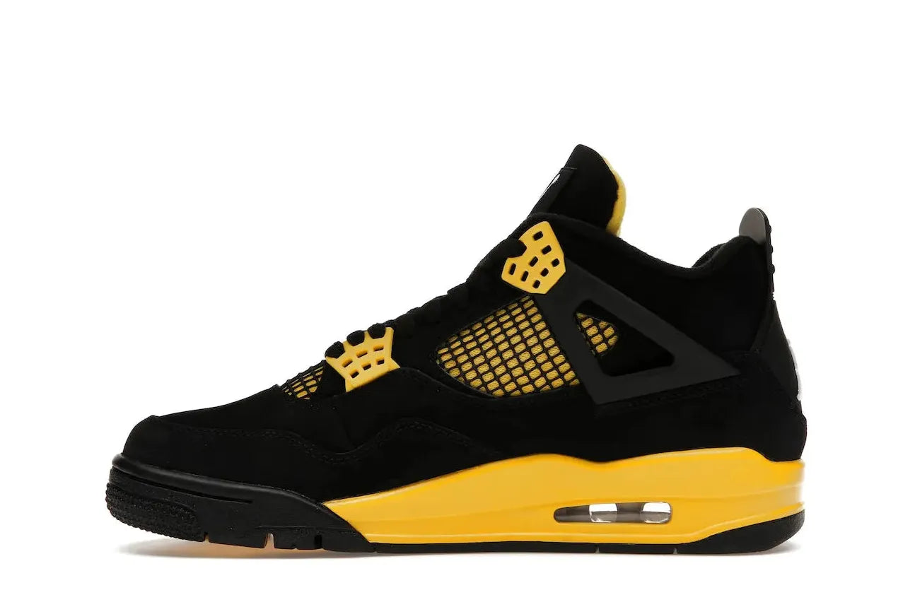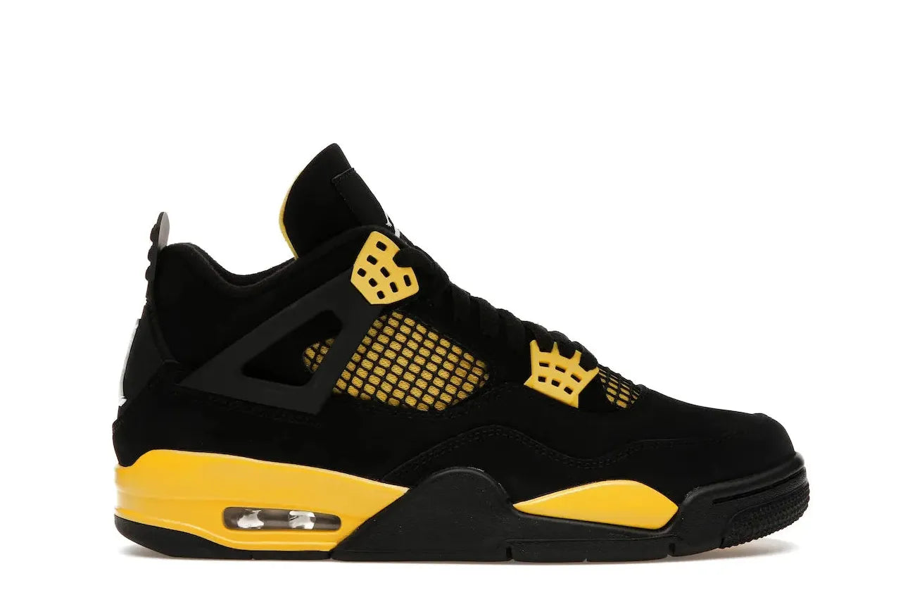 The sneaker is adorned with Michael Jordan's illustrious Jumpman logo on the heel tab, tongue, and insoles. Grab these reinvented Air Jordan 4 Retro Thunders and experience a piece of sneaker history as part of your robust collection.