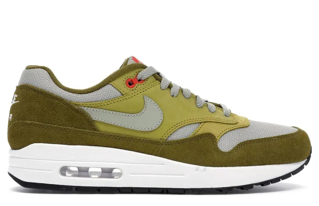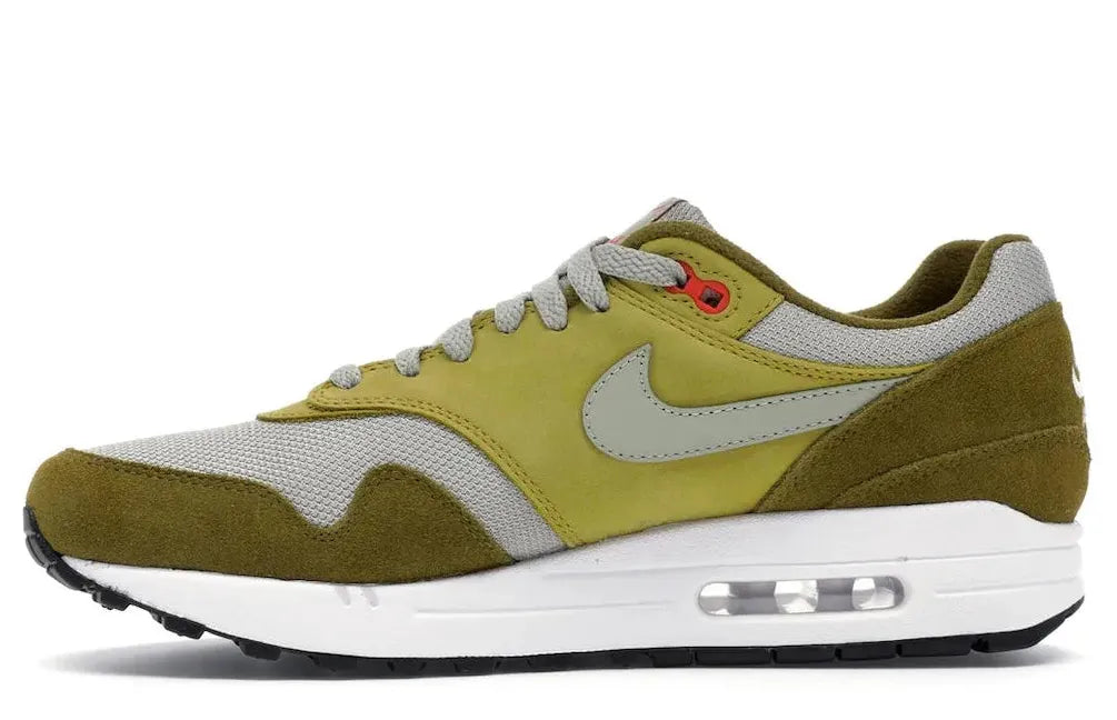 Relace is proud to present these sneakers, bearing the stamp of quality that is synonymous with Nike Air. This Air Max 1 Curry Pack Olives variant boasts of a well-contrasting olive and fog upper amidst premium materials. The accents of moss combined with the standout red branding on the tongue tag make it a crucial addition to any sneaker lover's collection.