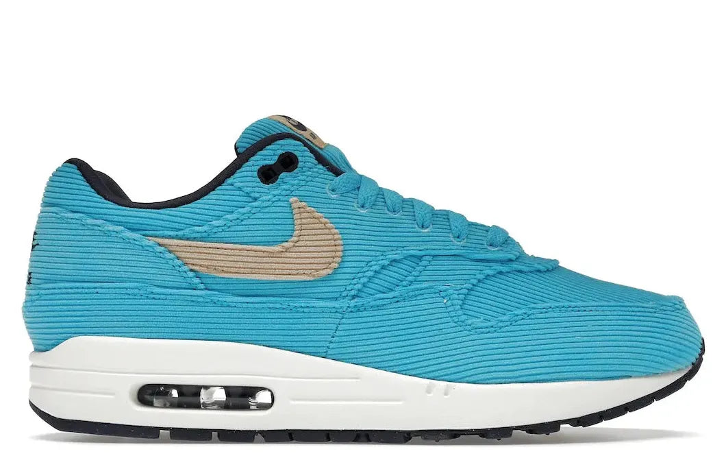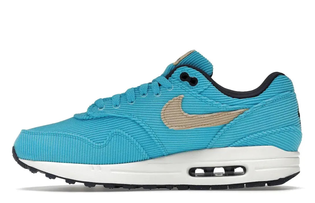 The Air Max 1 Corduroy Baltic Blue boasts a responsive cushioning system integrated into the upper, featuring Air-Sole units in the heel and forefoot for unparalleled comfort. Add a lightweight foam midsole to that, and you get a sneaker that's as light as it's comfortable. Accentuated with a sesame Nike Swoosh and additional Nike branding on the heel tab and tongue, the sneaker speaks its pedigree out loud.