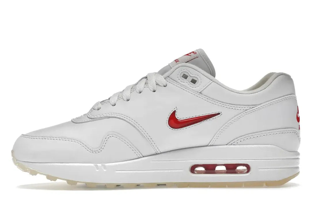 The Nike Air Max 1 Jewel Rare Ruby fuses old-school style with sleek, modern details. Its rare ruby hue undoubtedly makes a bold fashion statement, ensuring a unique edge in your footwear collection.