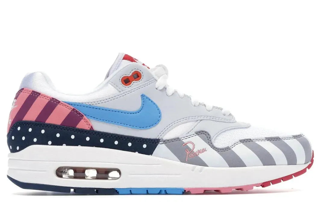 Experience groundbreaking style with this limited-edition Air Max 1 pair that launched in July 2018. This unique Nike and Parra creation is set to turn heads and is a must-have for sneaker collectors worldwide. Visit Relace today for more top-tier collaborations like this.