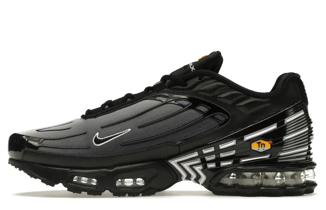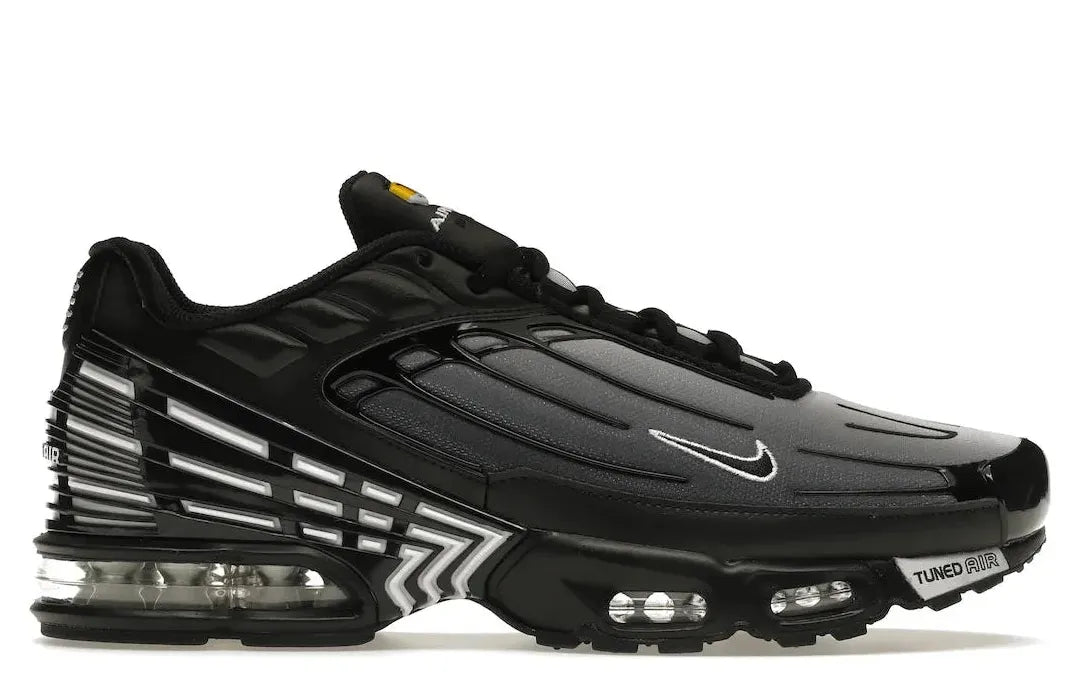 Relace takes pride in offering these Nike Air Max Plus 3 Black White sneakers with their unique visible Air Max units in the midsole. These units promise unparalleled impact absorption, delivering a responsive, cushioned feel with every stride you take.