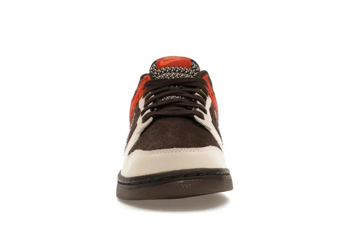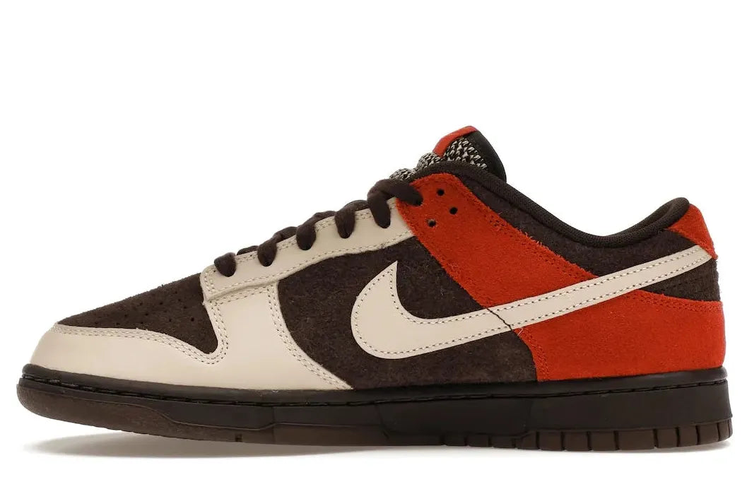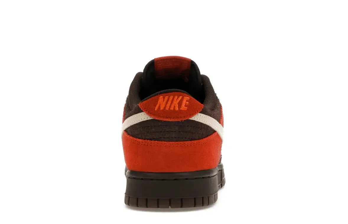 Embodying sophistication and versatility, the Dunk Low Red Panda showcases a rich, shaggy suede upper contrasted with a striking Rugged Orange shade gracing the suede overlays, heel tab, and the emblematic ‘NIKE’ branding on the textured tongue.