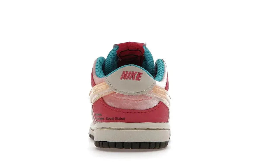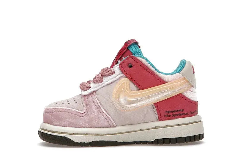 This lovely Nike Dunk Low Social Status Free Lunch Strawberry Milk TD model hit the market on the 15th of October 2021. Can't wait to make this premium sneaker part of your child's collection? Look no further than Relace.