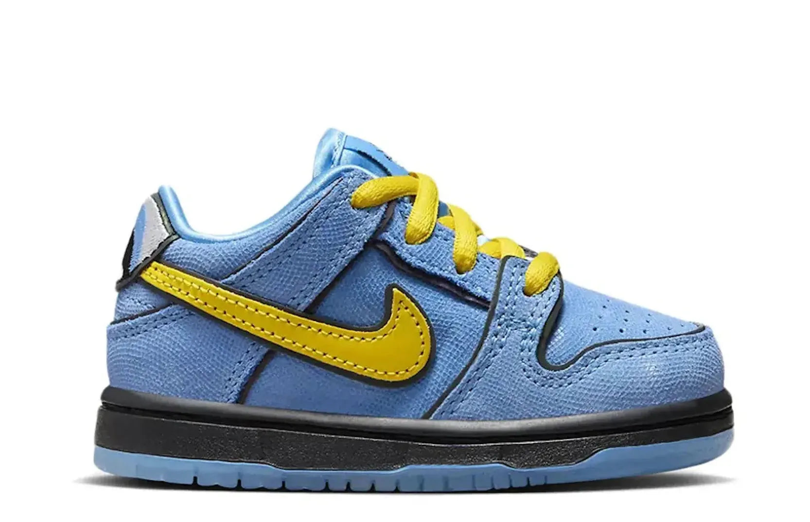 Relace presents these exclusive Nike SB Dunk Low sneakers that feature Bubbles' trademark colors and an adorable Powerpuff Girls logo embossed on the heel. The footwear also offers an unbeatable blend of style and comfort. Shop today for a touch of nostalgic cheerfulness in your kids' wardrobe.