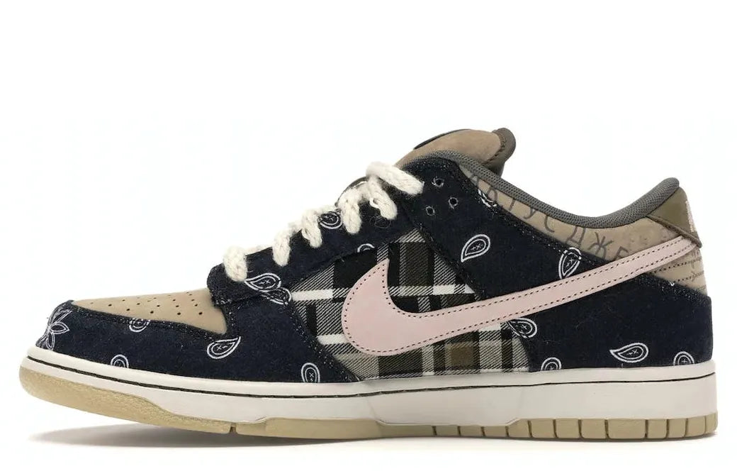 The Nike SB Dunk Low Travis Scott offers a combination of suede upper paired with paisley canvas and plaid flannel overlays, making it a fantastic addition to your collection. A surprise lays in the fact that as the paisley overlays fade over time, they reveal an impressive elephant print underneath. The design is artfully completed with embroidered text around the collar, rope laces, and La Flame's standout Cactus Jack logo on the puffy tongues. Relace is proud to offer these popular sneakers, originally released in February 2020.