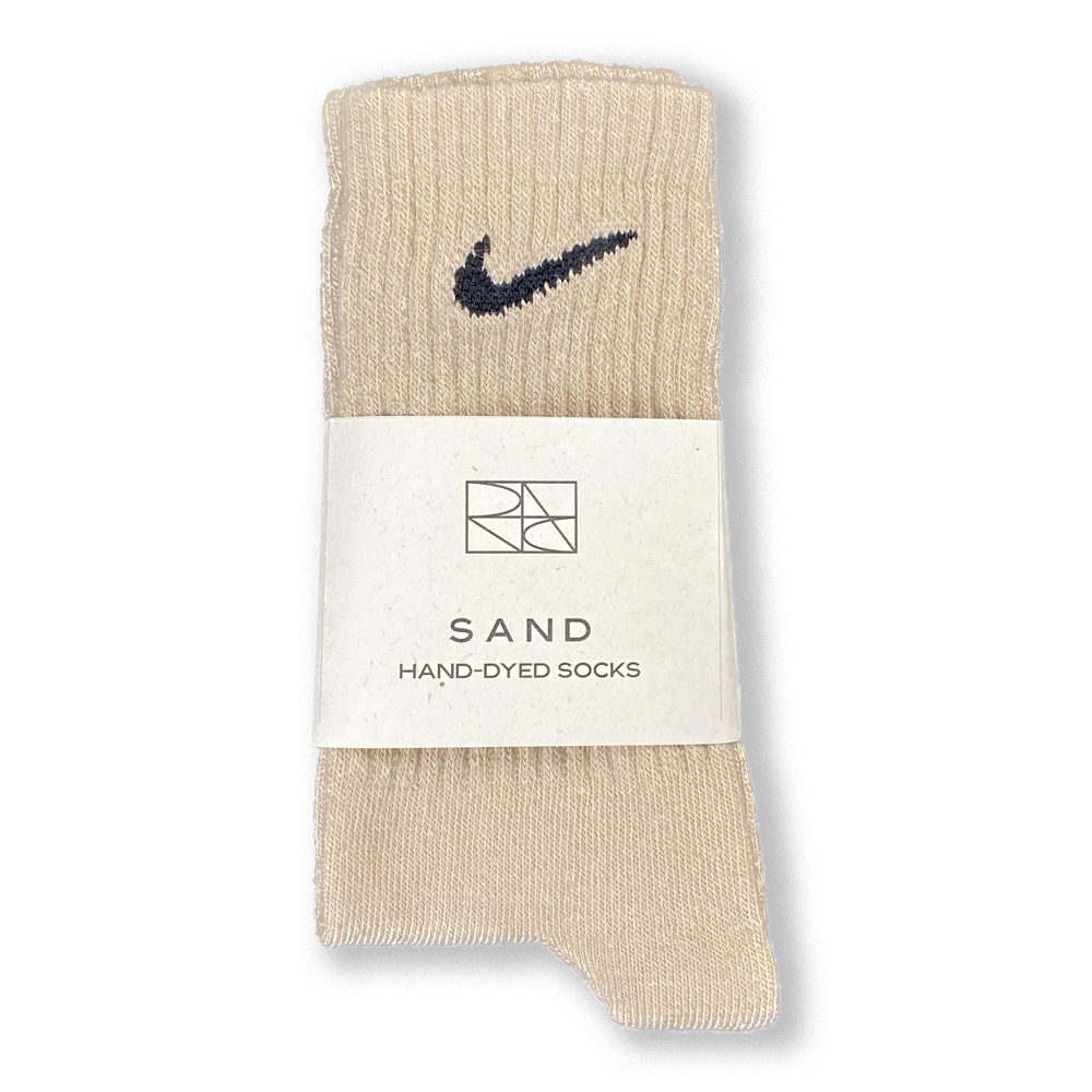 The hand-dyed Sand Nike Crew Sock comes in two sizes. We recommend size S if your shoe size is between EU38 and EU42. Size M is suitable for all shoe sizes between EU42 and EU46. Each pack consists of 1 pair of socks.