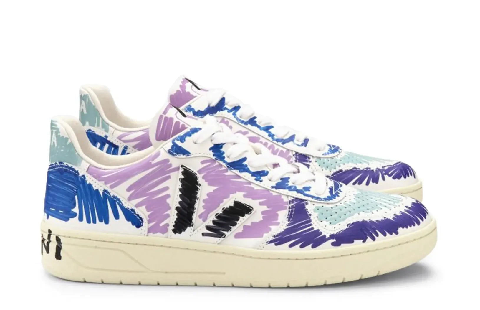 The Veja V-10 Leather x Marni Orchid Black comes with a unique aesthetic that combines Marni's avant-garde spirit with Veja's commitment to clean, forward-thinking design. With comfort and elegance in every step, these sneakers are perfect for individuals who value style and sustainability.